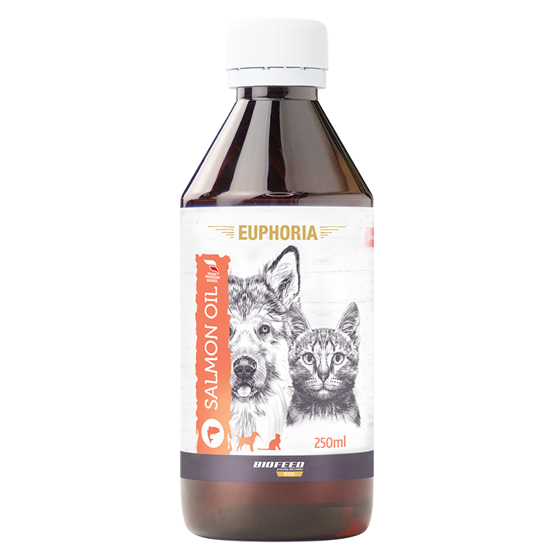 Wybierając Biofeed Euphoria – Olej z Łososia, zapewniasz swojemu psu wsparcie zdrowia i witalności każdego dnia, dbając o jego ogólną kondycję i dobre samopoczucie.