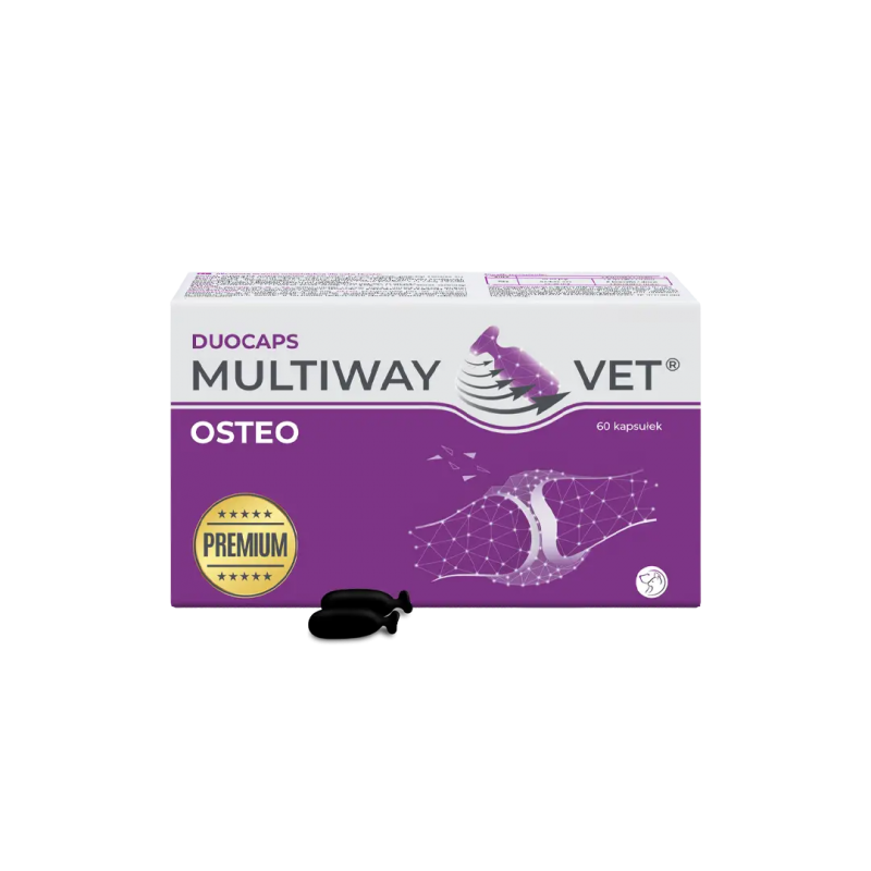 MULTIWAY VET® DUOCAPS OSTEO to specjalistyczny preparat w formie wygodnych kapsułek twist-off, stworzony z myślą o zwierzętach cierpiących na problemy ze stawami oraz jako profilaktyka chorób układu ruchu.