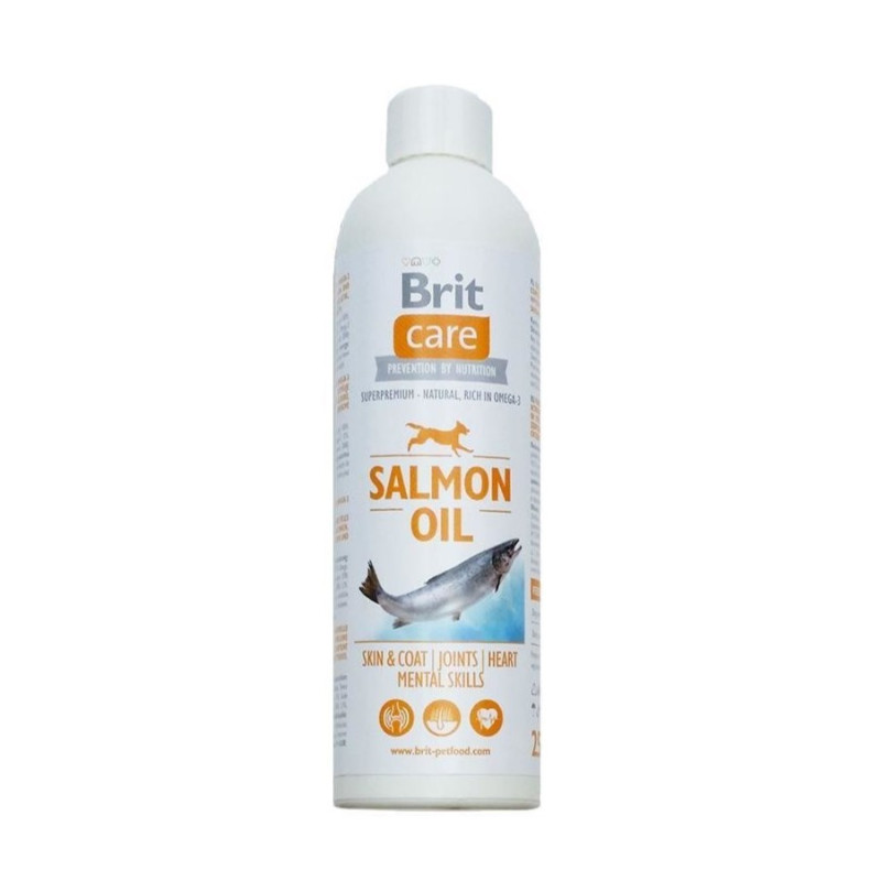 Olej z łososia Brit Care to sprawdzony suplement diety dla psów i kotów. Olej z łososia to przede wszystkim źródło cennych wielonienasyconych kwasów tłuszczowych omega 3 (EPA i DHA), które dzięki technologii tłoczenia na zimno nie tracą swych wartości. Wyjątkowe i wartościowe uzupełnienie diety zwierząt, wzmacniające układ sercowo-naczyniowy, immunologiczny oraz stymulujące pracę mózgu.