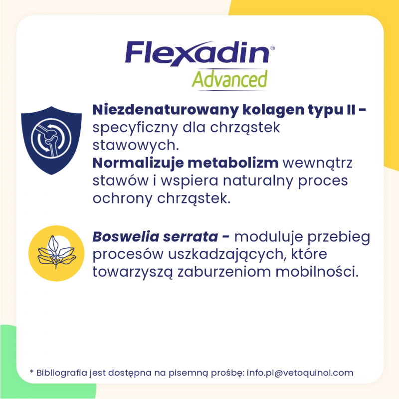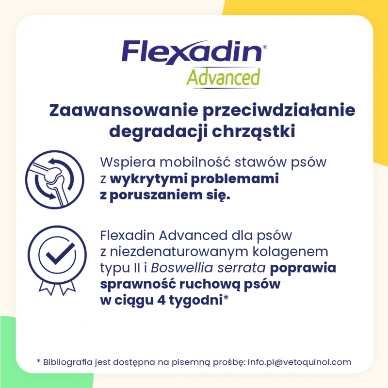 Innowacyjna formuła Flexadin Advanced dla psów – moc połączenia UC-II® i kwasów bosweliowych.