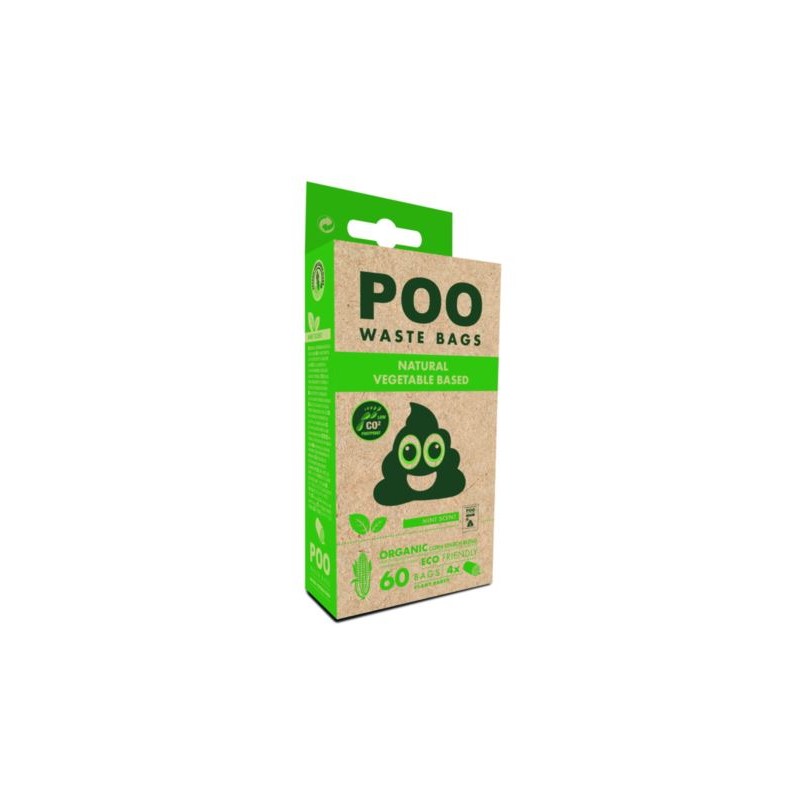 Mieszanka bio-skrobi kukurydzianej i PE. Woreczki na nieczystości Poo są ekologiczne, innowacyjne i wykonane z surowców roślinnych, dzięki czemu ograniczają niekorzystny wpływ na środowisko naturalne.