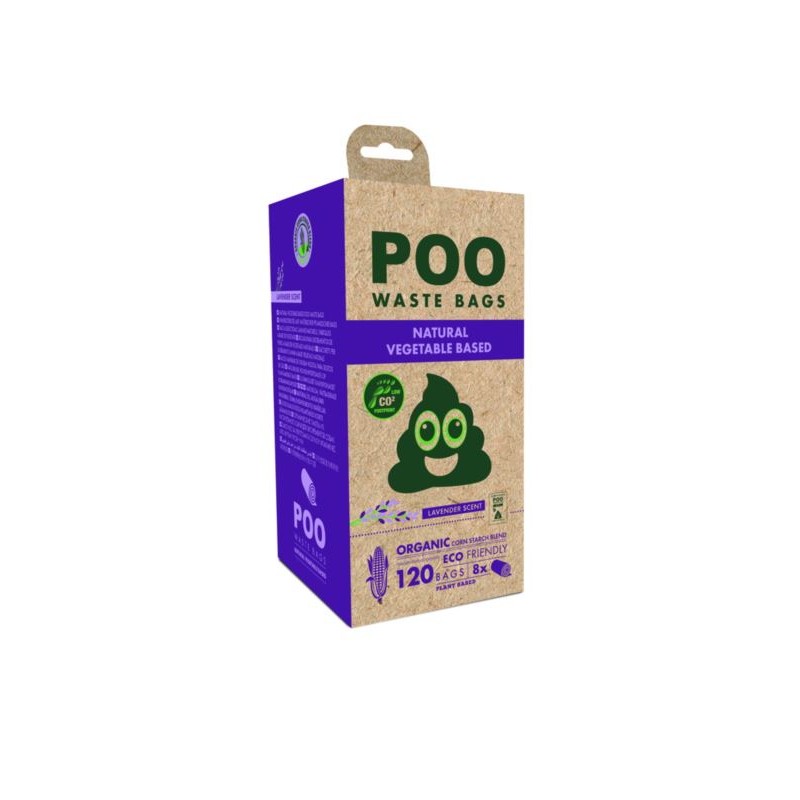 Mpets POO Biodegradowalne zapachowe woreczki na odchody 120szt 8 rolek Lawendowe