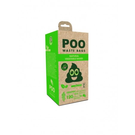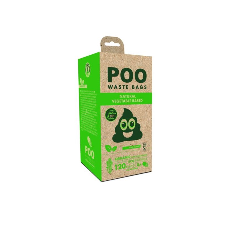 Mieszanka bio-skrobi kukurydzianej i PE. Woreczki na nieczystości Poo są ekologiczne, innowacyjne i wykonane z surowców roślinnych, dzięki czemu ograniczają niekorzystny wpływ na środowisko naturalne.