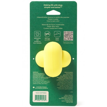 Jasnożółty kolor, który psy dobrze widzą, ułatwia szybkie znalezienie jej w trawie. Wykonanie z naturalnego kauczuku ze zrównoważonych źródeł (certyfikat PEFC/26-31-197) zapewnia trwałość, przyjazność dla środowiska i możliwość mycia w zmywarce na górnym poziomie.