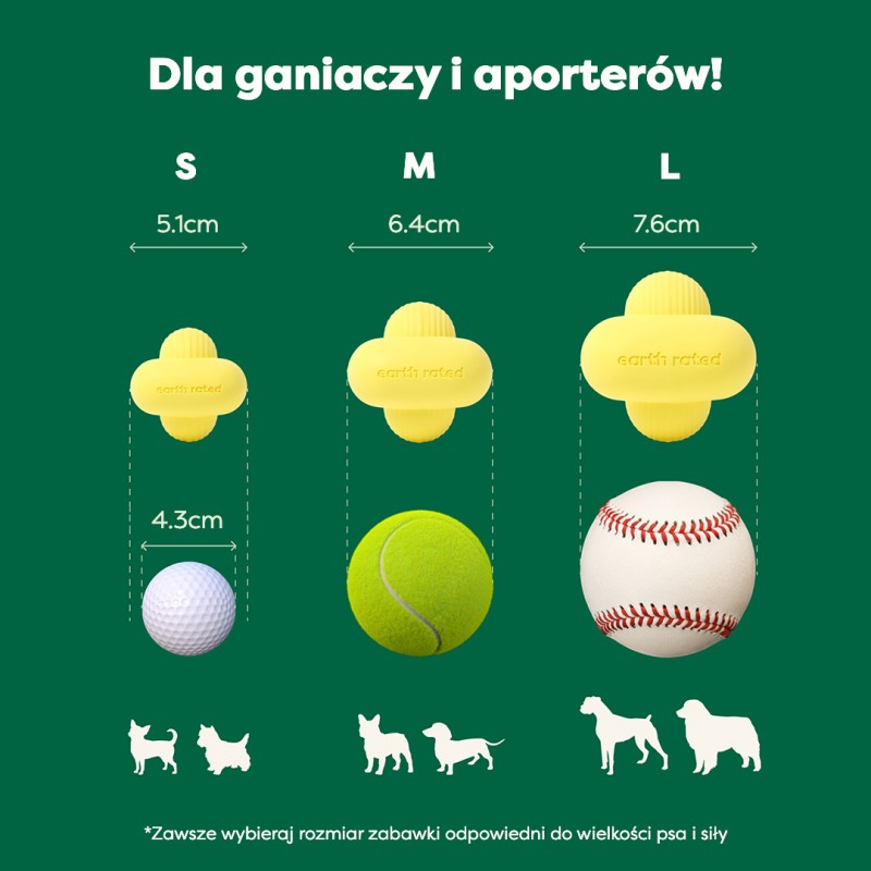 Zabawka została zaprojektowana tak, aby łatwo ją podnosić i rzucać, a jej unikalny kształt umożliwia naturalny przepływ powietrza, gdy pies trzyma ją w pysku, co zwiększa komfort termiczny podczas zabawy. Dodatkowo, zabawka unosi się na wodzie, więc doskonale sprawdzi się zarówno podczas zabaw w ogrodzie czy w miejskim parku, jak i na plaży czy nad jeziorem.