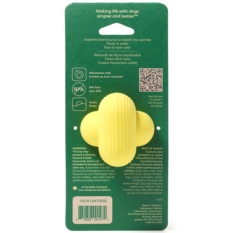 Jasnożółty kolor, który psy dobrze widzą, ułatwia szybkie znalezienie jej w trawie. Wykonanie z naturalnego kauczuku ze zrównoważonych źródeł (certyfikat PEFC/26-31-197) zapewnia trwałość, przyjazność dla środowiska i możliwość mycia w zmywarce na górnym poziomie.