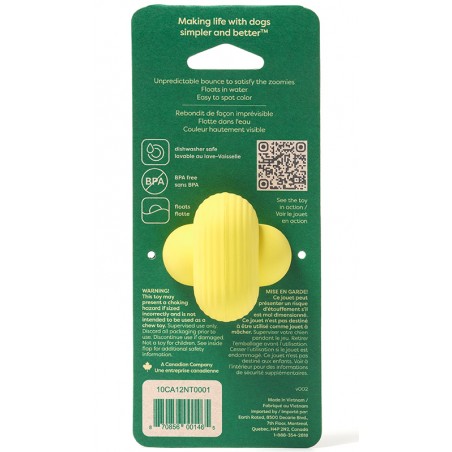 Jasnożółty kolor, który psy dobrze widzą, ułatwia szybkie znalezienie jej w trawie. Wykonanie z naturalnego kauczuku ze zrównoważonych źródeł (certyfikat PEFC/26-31-197) zapewnia trwałość, przyjazność dla środowiska i możliwość mycia w zmywarce na górnym poziomie.