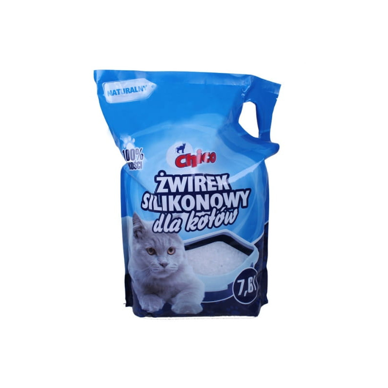 Żwirek silikonowy Chico to w 100% naturalny żel krzemionkowy. Naturalny, nietoksyczny i przyjazny dla środowiska. Granulki silikonowe pochłaniają mocz kota w kilka sekund i pozostają suche w dotyku, a zapach jest nie tylko wychwytywany, ale całkowicie eliminowany. Proces adsorpcji niszczy również bakterie, a perełki silikonowe mają specjalny rozmiar, kształt i skład, który nie przykleja się do sierści kota i nie jest wynoszony z toalety,