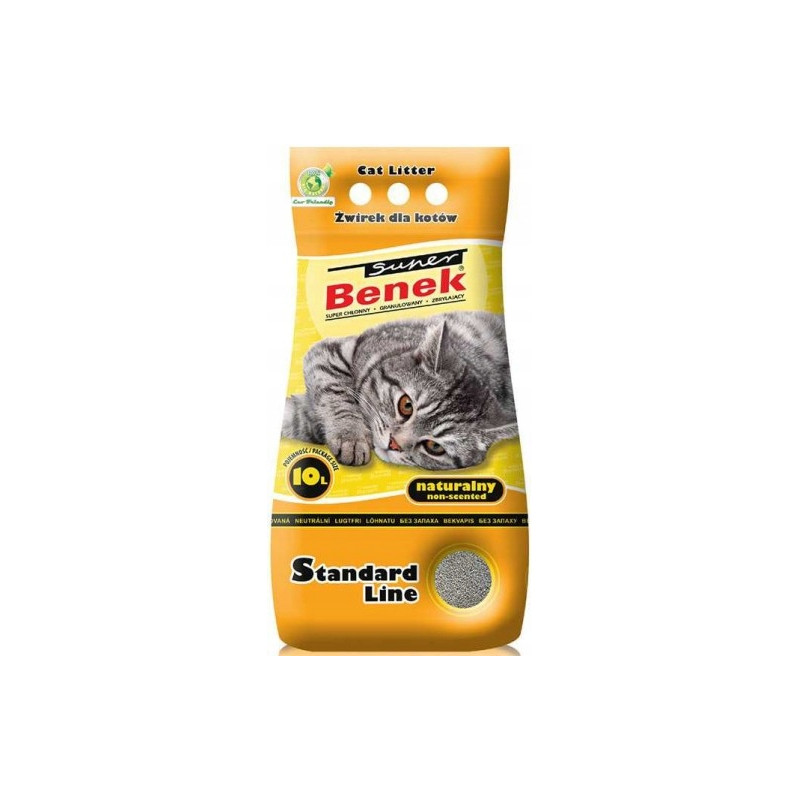 Żwirek higieniczny Benek Standard dla zwierząt domowych wytwarzany z glinki bentonitowej. Dzięki zastosowanej technologii produkcji uzyskano regularne ziarna żwirku o wymiarach 2-5 mm. Wydajny, zbryla się z jednoczesnym pęcznieniem, co zwiększa znacznie jego wydajność. Bardzo skutecznie pochłania płyny i przykre zapachy.