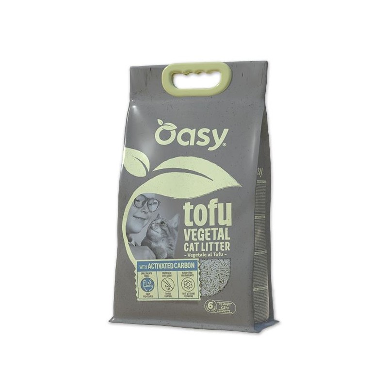 Oasy Vegetal to świat naturalnych, w 100 % biodegradowalnych i przyjaznych dla środowiska żwirków dla kotów. Żwirek dla kotów Oasy Tofu z węglem aktywnym jest produkowany z wysokiej jakości składników roślinnych, takich jak włókna sojowe, skrobia kukurydziana i guma guar. Mikrogranulki żwirku są wzbogacone węglem aktywnym, mają bardzo wysoką chłonność i neutralizują nieprzyjemny zapach, zapewniając dobre samopoczucie kota i czysty dom.