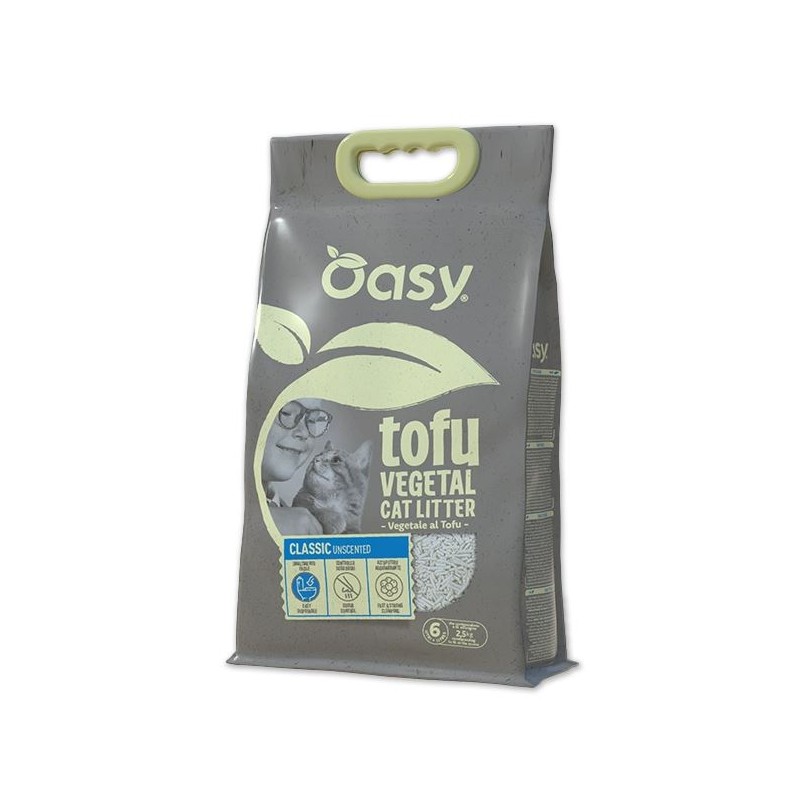 Oasy Vegetal to świat naturalnych, w 100 % biodegradowalnych i przyjaznych dla środowiska żwirków dla kotów. Żwirek dla kotów Oasy Tofu jest produkowany z wysokiej jakości składników roślinnych, takich jak włókna sojowe, skrobia kukurydziana i guma guar. Mikrogranulki żwirku są lekkie, mają bardzo wysoką chłonność i neutralizują nieprzyjemny zapach, zapewniając dobre samopoczucie kota i czysty dom.