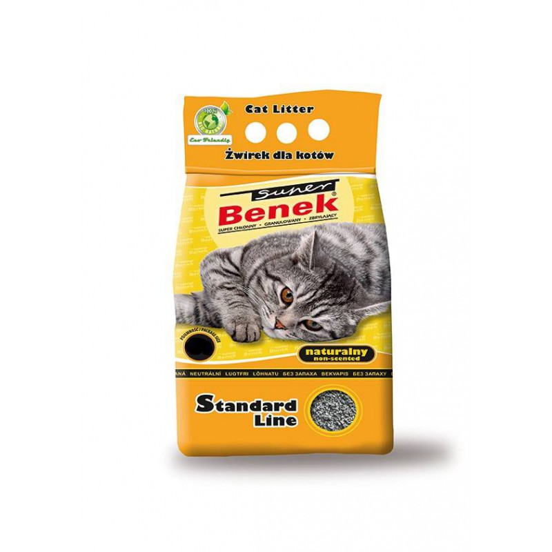 Żwirek higieniczny Benek Standard dla zwierząt domowych wytwarzany z glinki bentonitowej. Dzięki zastosowanej technologii produkcji uzyskano regularne ziarna żwirku o wymiarach 2-5 mm. Wydajny, zbryla się z jednoczesnym pęcznieniem, co zwiększa znacznie jego wydajność. Bardzo skutecznie pochłania płyny i przykre zapachy.