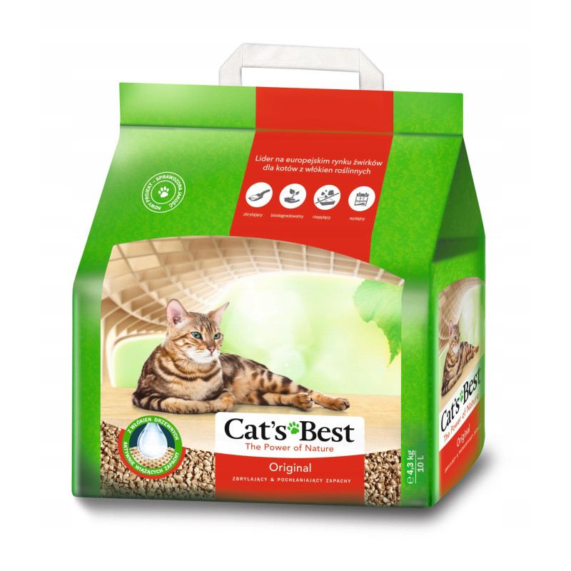 Żwirek Cat's Best Original to naturalny i ekologiczny żwirek, który zostanie w 100% zaakceptowany przez Twojego kota. Żwirek nie klei się do łapek, a do tego ma naturalny zapach. Doskonale się zbryla, dzięki temu sprzątanie kuwety staje się zdecydowanie prostsze. Cat’s Best Original działa najlepiej, gdy wyjmowane są z niego na bieżąco zwarte odchody, a powstałe po kociej wizycie bryłki usuwane są regularnie do śmieci biologicznych lub spłukiwane w toalecie.